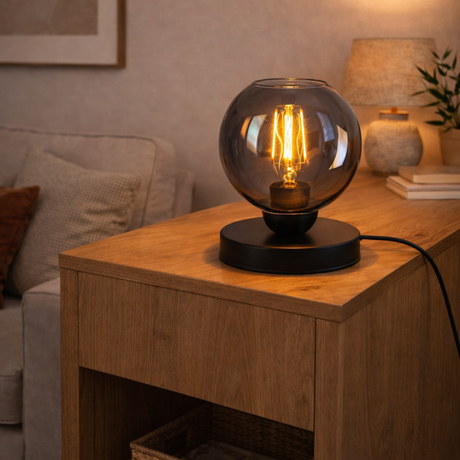 Tischleuchte Tess – Schwarz mit Rauchglas